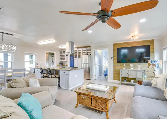 The 2-bedroom Walk To Crystal Beach Pet-Friendly Home With Deck is located within 20 minutes' walk of the Harold's Fun Town Water Park, giving access to various tourist spots nearby.